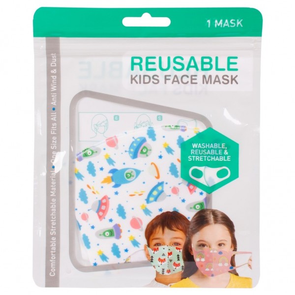 Keep your children safe with these washable, reusable & stretchable kids face masks which will cover the nose and mouth each one has a brilliant bright coloured themed fun design including rainbow, dinosaurs, fish, foxes & space.
