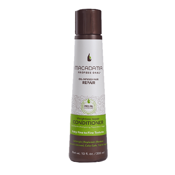 Weightless Moisture Conditioner is an ultra-lightweight formula that won’t weigh down finer hair textures, allowing for more lift, body and volume. It contains the exclusive Pro Oil Complex of Macadamia and Argan Oils to help strengthen and repair while lightweight Avocado and Walnut Oils nourish and hydrate. A combination of Collagen and Vitamins A, C and E helps promote tensile strength. With continued usage, the Weightless Moisture Conditioner helps prevent breakage in even the finest hair textures. Method After shampooing, apply to hair, starting at the ends and working your way up to the scalp. Leave in for 30 seconds. Rinse thoroughly. Why it Works Macadamia Oil — rich in nourishing Omega 7, 5 and 3 fatty acids that promote healthy hair. Argan Oil — rich in Omega 9 fatty acid that helps to repair and strengthen hair. Avocado and Walnut Oils — ultra lightweight nourishing oils that strengthen, hydrate and revive. Collagen and Vitamins A, C and E — promote tensile strength
